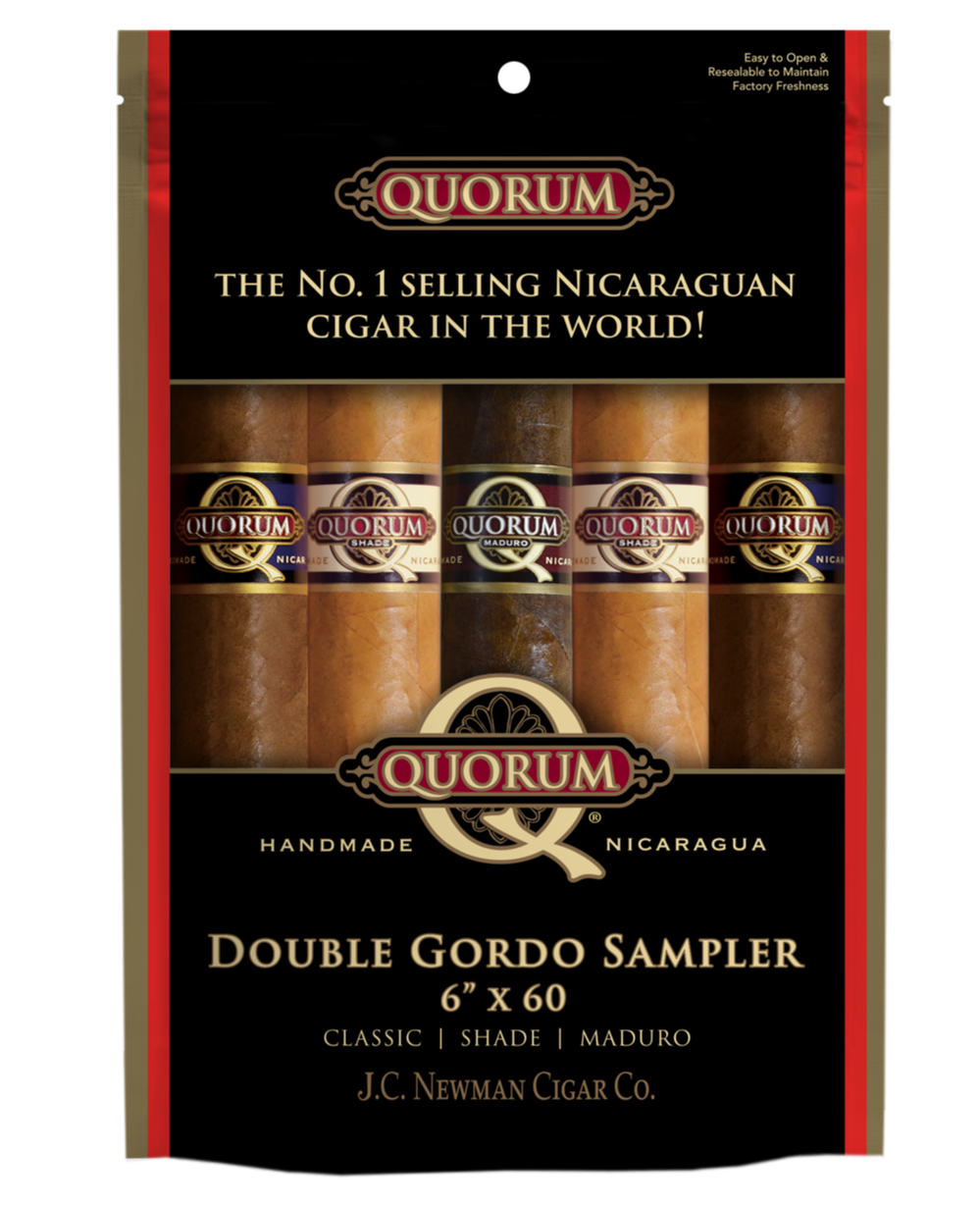 Today, J.C. Newman Cigar Co. is introducing the new Quorum Double Gordo Sampler Bag at the Total Product Expo (TPE) in Las Vegas. This new package allows customers to experience all three Quorum blends, bundled into one convenient five-pack. The sampler pack has a suggested retail price of $17.52 and includes: